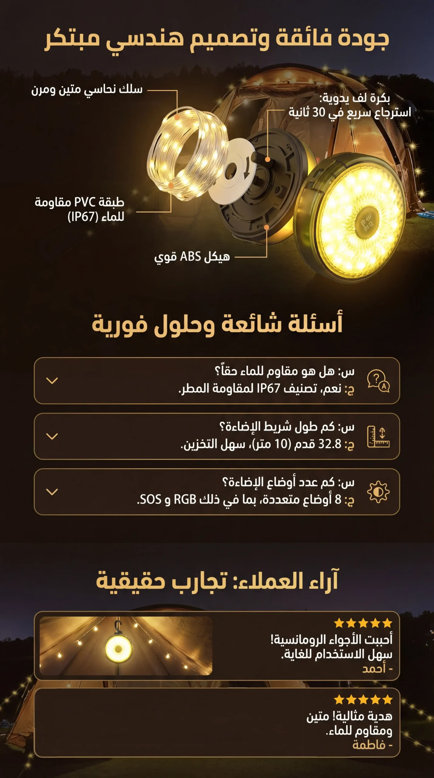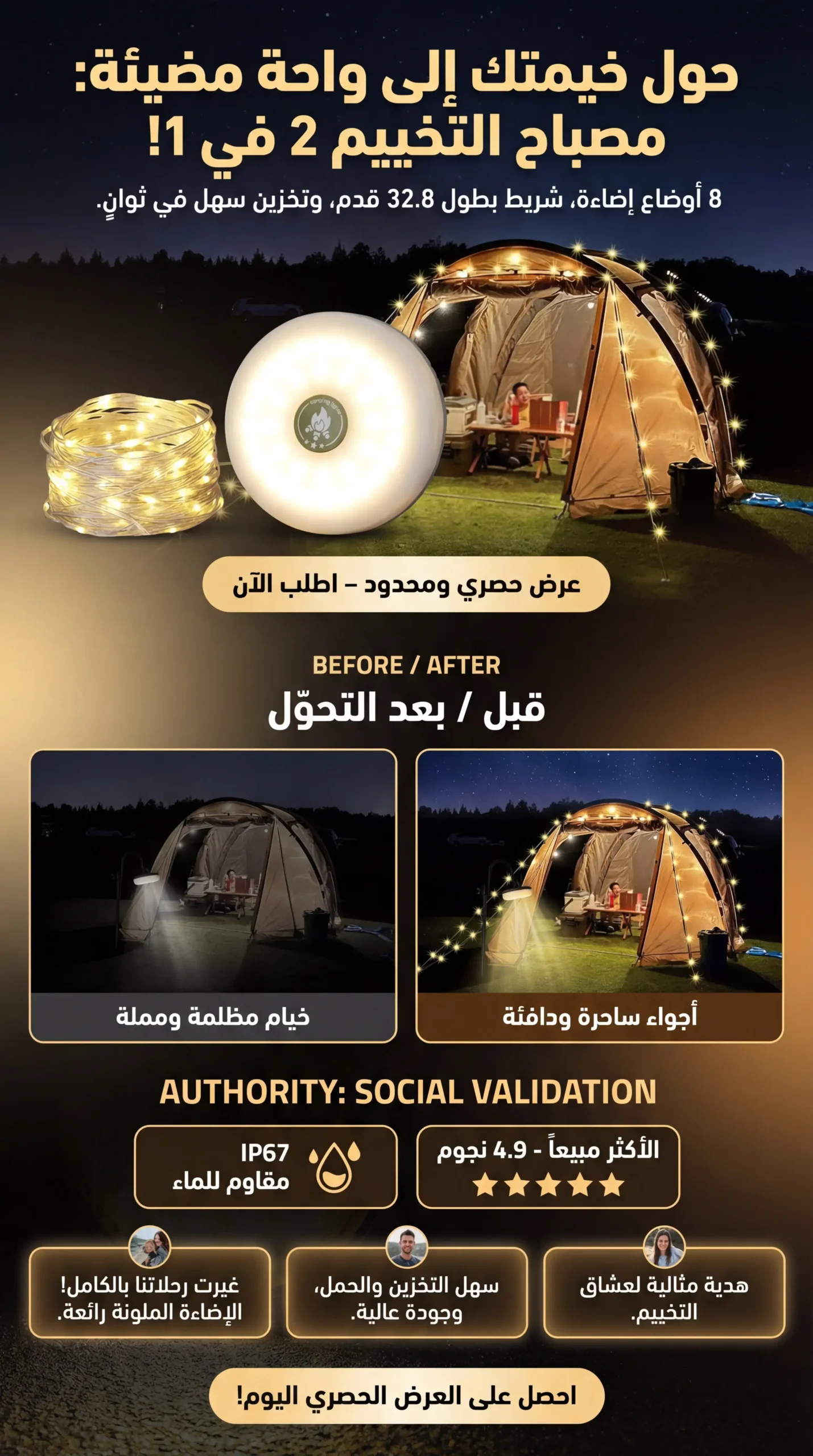 هل تبحث عن مصباح محمول عملي وأنيق يرافقك في رحلات التخييم، السفر، وحتى في المنزل؟ مصباح التخييم الذكي هو الحل الأمثل لك!