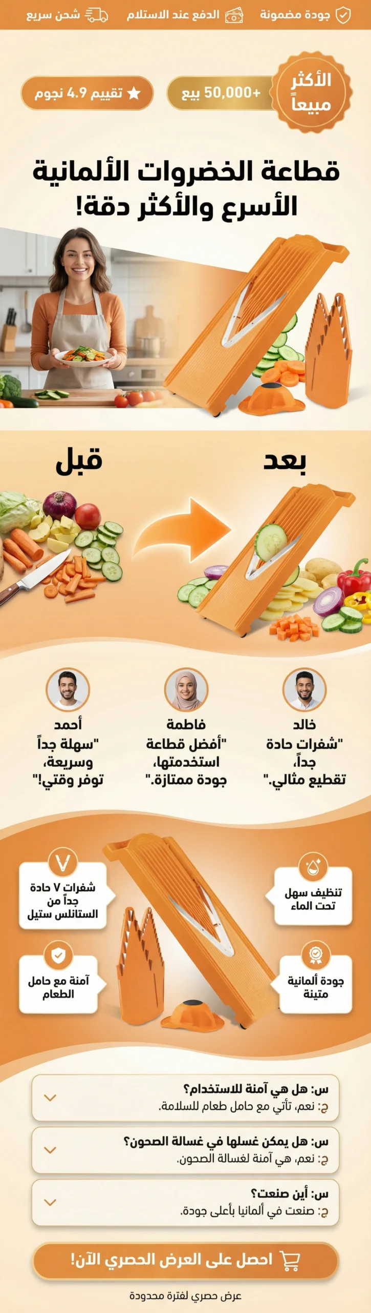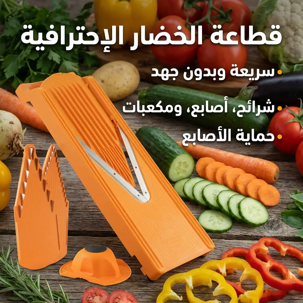 مصممة لتجعل عملك في المطبخ أسرع وأسهل بفضل شفراتها الفولاذية. تمنحك تحكماً كاملاً في سمك الشرائح والتقطيع بأشكال متنوعة بدقة احترافية